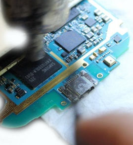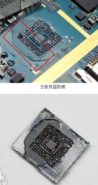 4、除胶,这里需要去除的是字库底部以及主板上残留的胶。(高级工程师可操作,需要对温度、力度有相当准确的掌握)