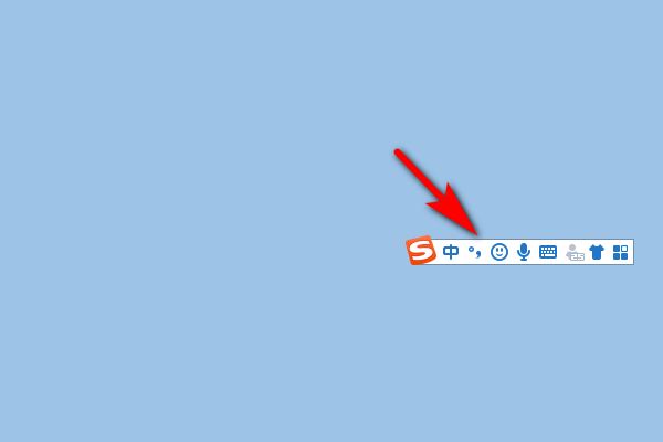 3、然后鼠标点击一下图中箭头位置,就可以切换成半角输入法,半角输入法时句号是个实心圆点。