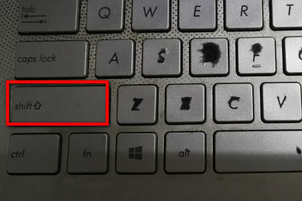 4、另外也可以在电脑键盘上面找到shift键,点击此键盘,也可以切换全角和半角输入法。
