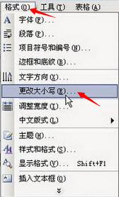 1、选中全角字符,点击“格式”,选择“更改大小写”,