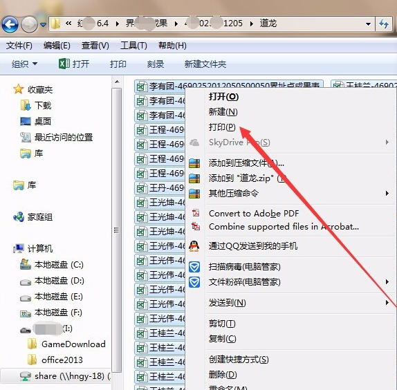 2、此时在系统里就可以一次性选择多个文档一次单击右键选择打印了,如图所示:
