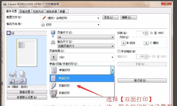 4、如需要批量打印双面(A3、A4)则需设置【打印机首选项】,在里面设置你需要打印的纸张大小及双面打印设置。