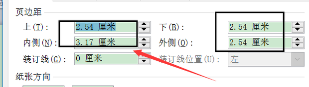 在“多页”列表中,选择“对称页边距”。 在“内侧”和“外侧”框中,输入对称页边距的值。 设置用于装订