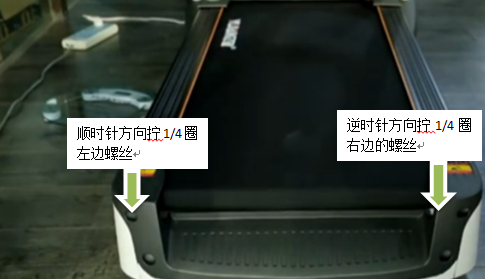 2、进行步骤1时,先开启跑步机,调至低速。如果跑带偏向的是左边,就要以顺时针方向调节左边螺丝或者逆时针调节右边的螺丝,每次建议调整90度,右边松也是相同的道理。