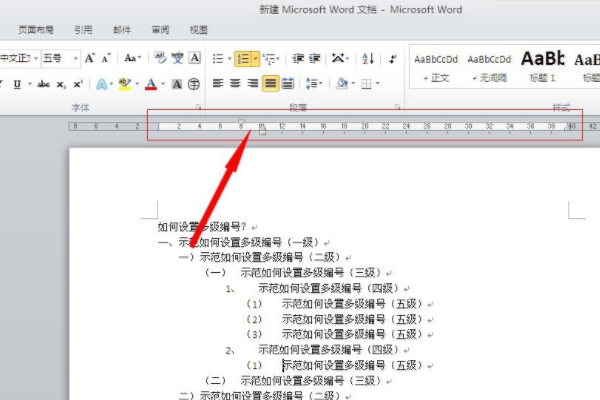 8、根据需要不断重复设置,直到所有的标题都设置完成。因为缩进是之前设置好的,可能会有不合适的地方,直接在上方的标尺那拖动两个三角就可以调整了。