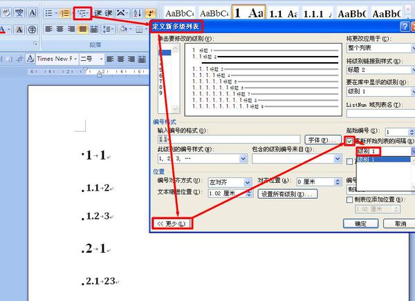 1.执行“格式” →“项目符号和编号”→“多级符号”选项卡。
