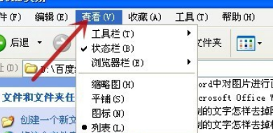 1、用鼠标左键单击文件夹顶端的“查看”(图中红色箭头所指),在弹出菜单中点击“详细信息”(图中蓝色箭头所指)