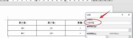 6.word表格跟EXCEL表格在行列划分是一样的,即是A1、A2、A3.....B1、B2、B3.....对于这点我们要触类旁通,道理是一样的,只是展示的方式不同而已,下面我们在第一行公式输入:=A2-B2 点击确定