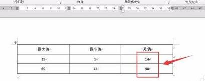 7.软件自动给出最大值与最小值的差值,即是19-5=14,第二行也是同理