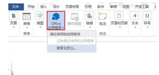1、启动Word2013,单击菜单栏--插入00office应用程序,选择查看全部。