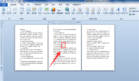 1、以Word2010版本为例,如下图所示,这两页间是没有空白页的,现要在这两页间插入空白页;