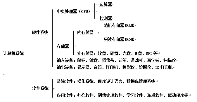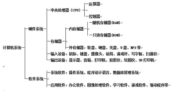 电脑系统组成分为硬件系统和软件系统。硬件分为运算器、控制器、存储器、输入设备和输出设备,软件分为系统软件和应用软件。