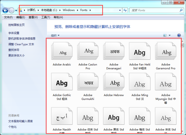 win7中添加新字体方法有两种,具体如下;