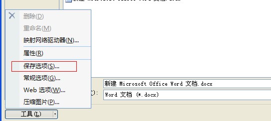 3、在打开的“另存为”对话框中单击“工具”按钮,并在打开的菜单中单击“保存选项”命令。