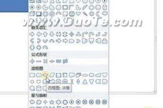 第2步:选中绘图画布,在“插入”功能区的“插图”分组中单击“形状”按钮,并在“流程图”类型中选择插入合适的流程图。例如选择“流程图:过程”和“流程图:决策”。
