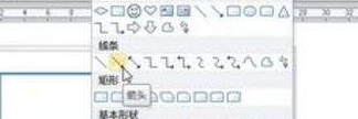 1. 选择窗口底部的“自选图形”按钮,在弹出的列表依次选择“连接符→直箭头连接符”。