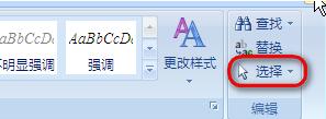 2:在“开始”项下找到“编辑”选项区,其中有一个“选择”的选项按钮,点击它