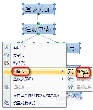 第二步:在任意一个文本框上点击鼠标右键,弹出菜单项,选择“组合”-“组合”选项,至此所有的对象就轻松的被选择组合了,可以任意进行移动。