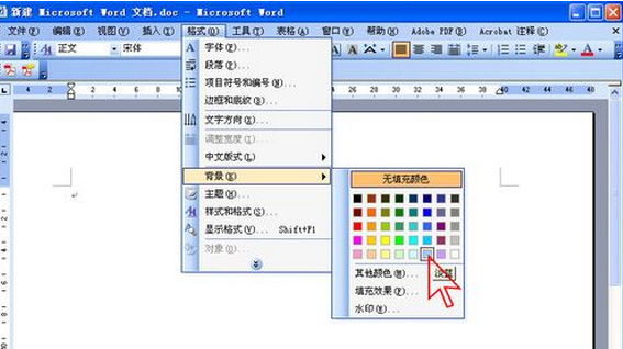 首先,打开文档,然后单击菜单栏上的“格式”下拉列表中的“背景”,此时你就可以在里面任意挑选自己喜爱的颜色; 如果没有找到合适的颜色,你可以点击“其他颜色”,这里有各种各样的颜色供你选择。