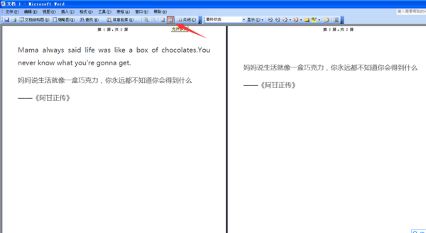 word打开后两页并列显示,如何将其改成只显示一页?