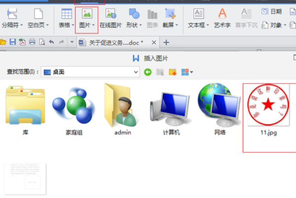 想在这里面的最后插入一个单位的电子章,方法就是点击菜单栏的“插入——图片——来自文件/图片等等均可”找到自己的电子章选中,确定,这个时候电子章就插入进来了,见下图: