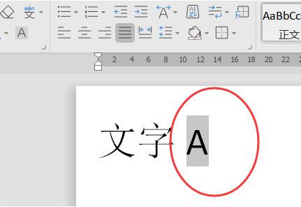1、打开word文档,在页面中输入“文字A”,并选中字母“A”作为制作上标文字。