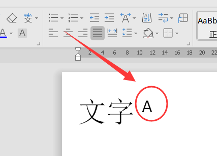 4、即可看到之前选中的字母“A”已经变成“文字”两字的上标符号了。