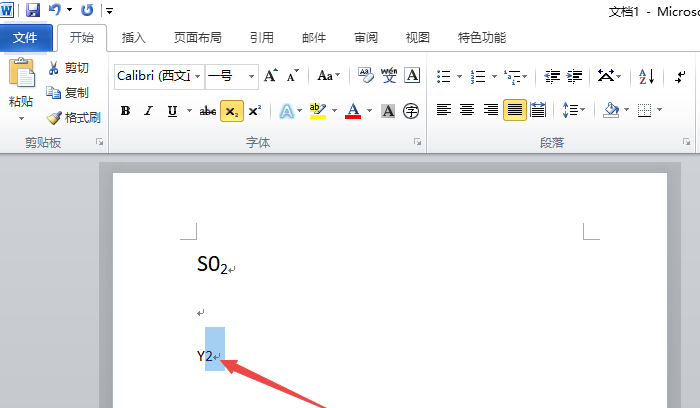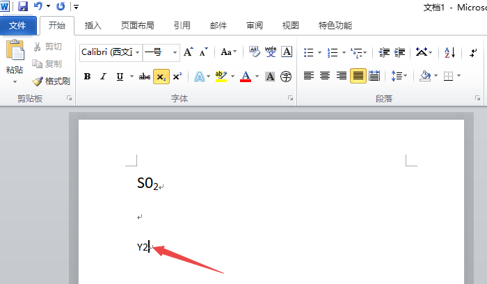 1、打开word2010文档,在开始菜单中可以找到上标和下标符号。
