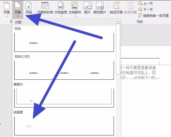6、然后选择左侧的页脚,选择一个我们喜欢的形式。