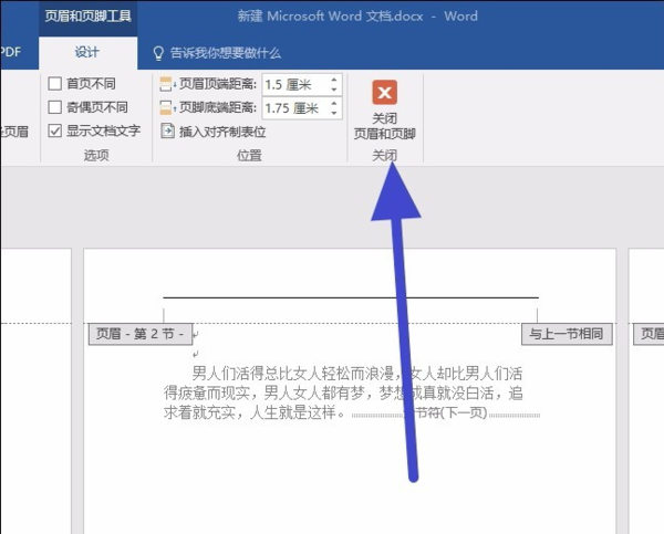 5、关闭“‘页眉和页脚’浮动工具条”。
