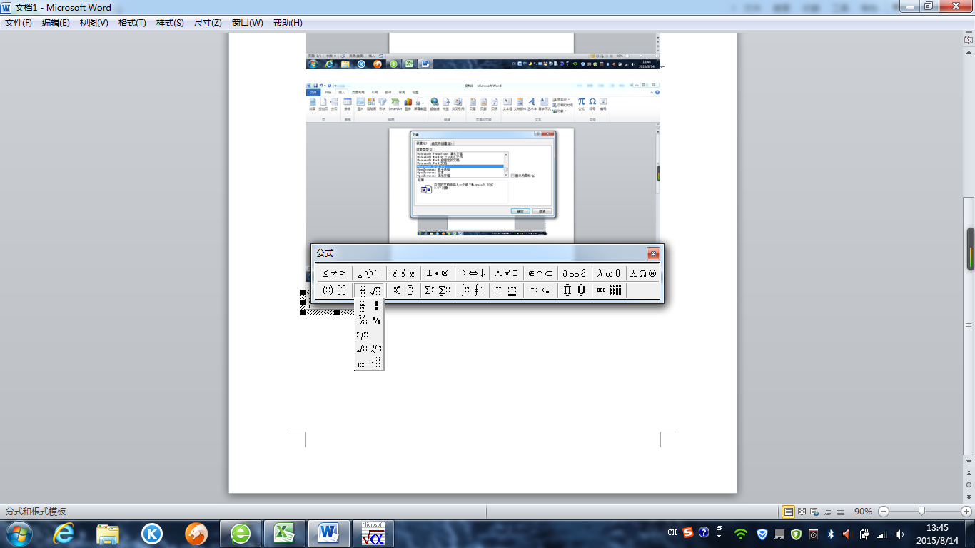 第2步,打开公式编辑窗口,在“公式”工具栏中选择合适的数学符号(例如分式。在公式中输入具体数值。在公式编辑窗口中单击公式以外的空白区域,返回Word文档窗口,可以看到公式以图形的方式插入到了Word文档中。