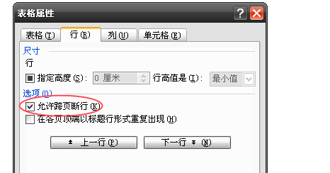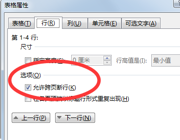 word 表格属性-行-允许跨页断行 为什么不能勾选?