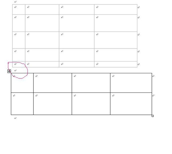 你可把把两个表的头尾先连接上,也就是最下边的线和最上边的线重合在一起,但是这样并没有真正的连接在一起,你可以把两个表都选择上,然后复制到EXCEL中,在从EXCEL中复制,粘在WORD中就可以了,这样就成一个表了..是很笨吧,不过我只试过这个方法可以实现..