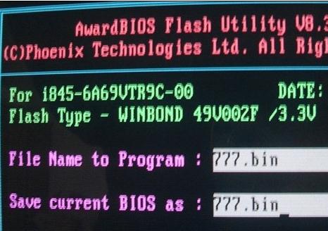 b: 777.bin是备份的主板biso文件名,可以随便命名。