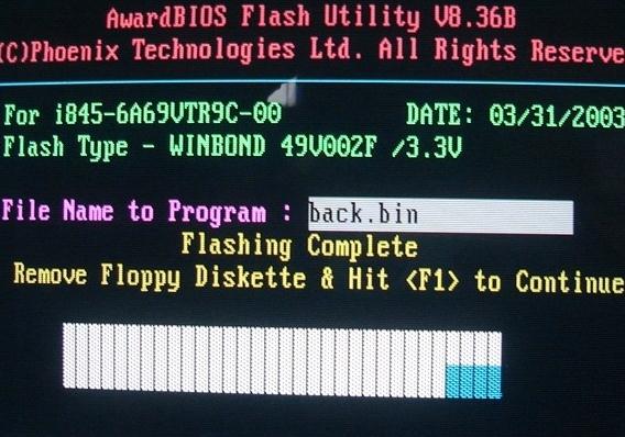 确定后就会自动完成BIOS的刷新操作,完成后重新启动。