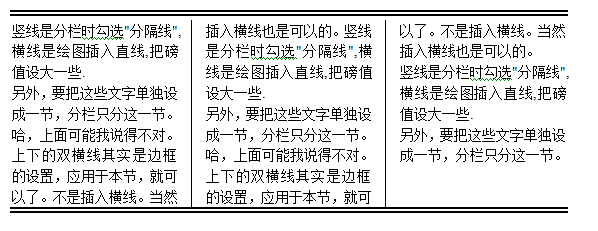 竖线是分栏时勾选"分隔线",横线是绘图插入直线,把磅值设大一些.