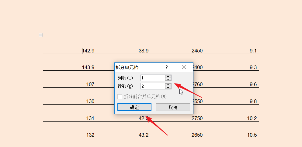 5、在拆分单元格内输入自己需要的行数,点击确定。