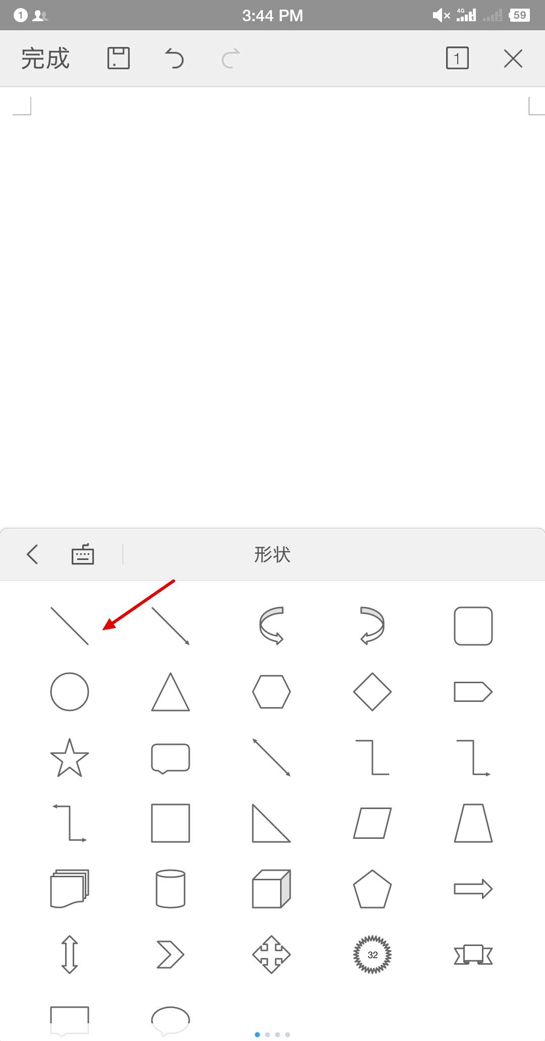4.在形状选项中找到横线选项,点击该图标即可成功插入横线,如下图所示。