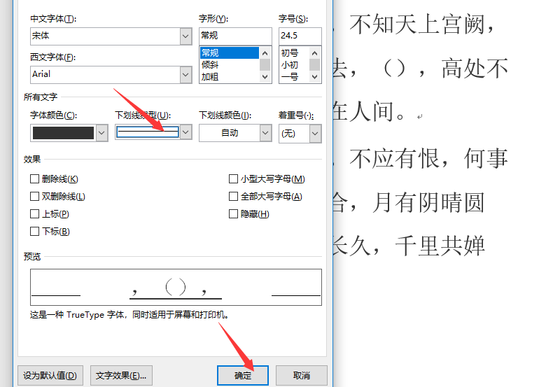 三、选择好需要线型后点击确定,退出界面,回到需要加下划线的地方。