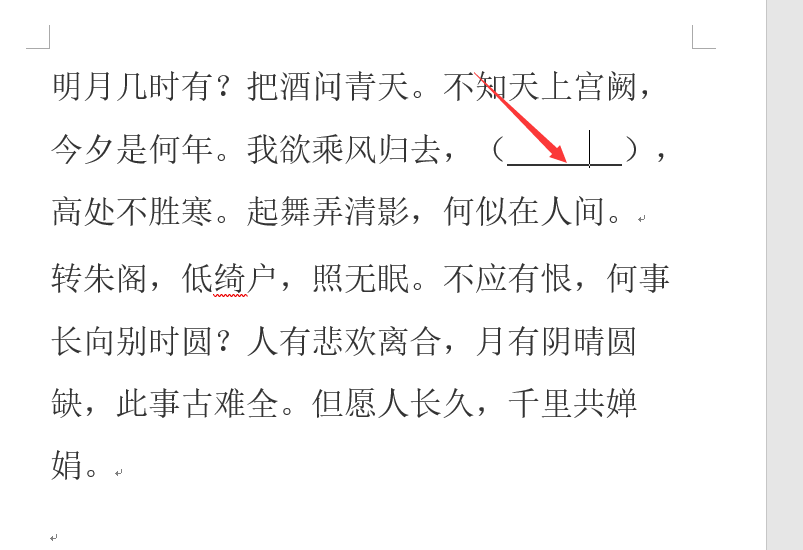 在WORD中如何加入插入填空的下划线?