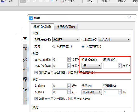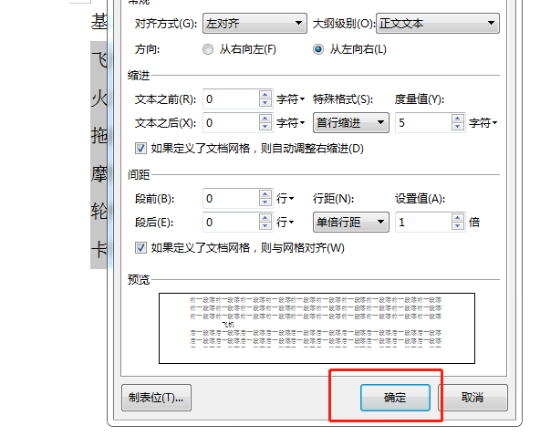 3、点击鼠标右键,选择段落,在段落操作界面上的特殊格式上面选择首行缩进,在度量值上敲入5。
