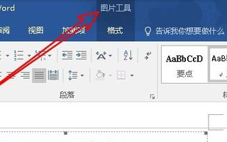 2、接下来在文档中随便选中一张图片,然后可以看到在菜单栏多了图片工具的菜单。