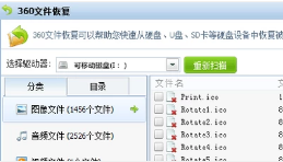 3下面咱们就将手机连接上电脑,翻开360文件康复东西(在360安全卫士中能够找到)。挑选可移动磁盘(也即是您手机的盘符)。点击开端扫描。