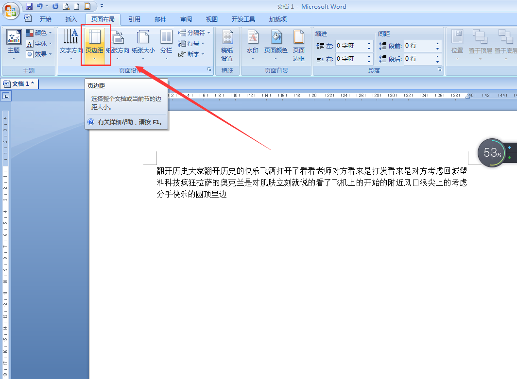在word2007编排中常常需要设置页边距,具体操作如下: