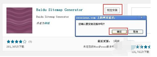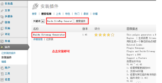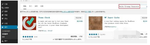 2,选择安装插件-在输入框输入Baidu SiteMap Generator搜索插件;