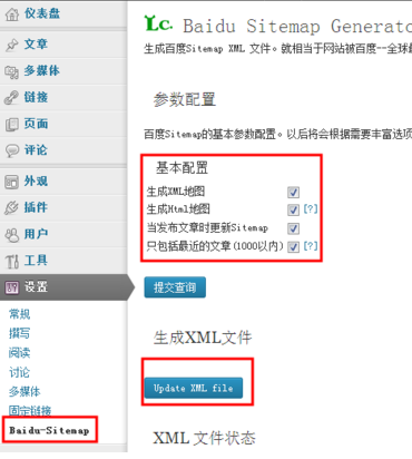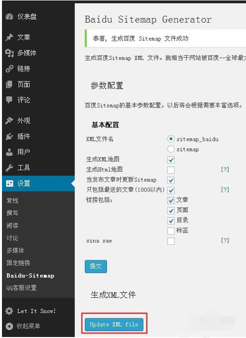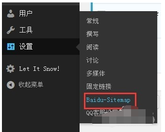 3,安装并启用插件,点击设置- sitemap_baidu ,进入设置插件生成XML文件;