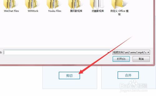 然后会弹出一个窗口,我们要从此处找到我们要剪切的视频文件进行添加,选中文件点击“打开”即可。
