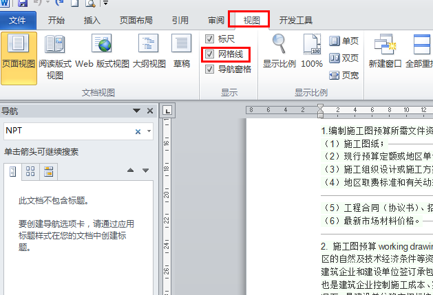首先显示word的网格线,如下图: