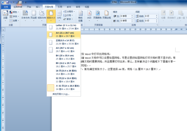 1、首先确定纸张大小,这里选择A4纸,规格(21厘米×29.7厘米).