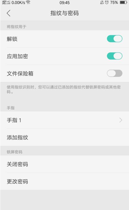 注意:通过设置关闭应用加密,仅适用于关闭指纹。